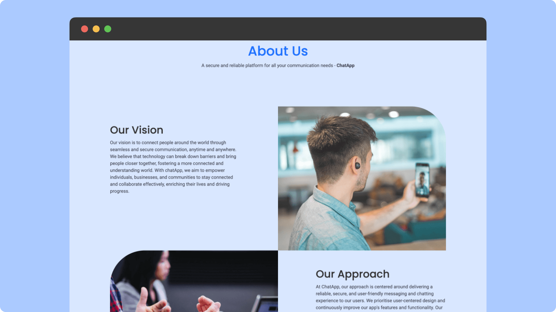 In conclusion, the ChatApp website-building process was guided by a combination of design thinking and a focus on achieving business goals.